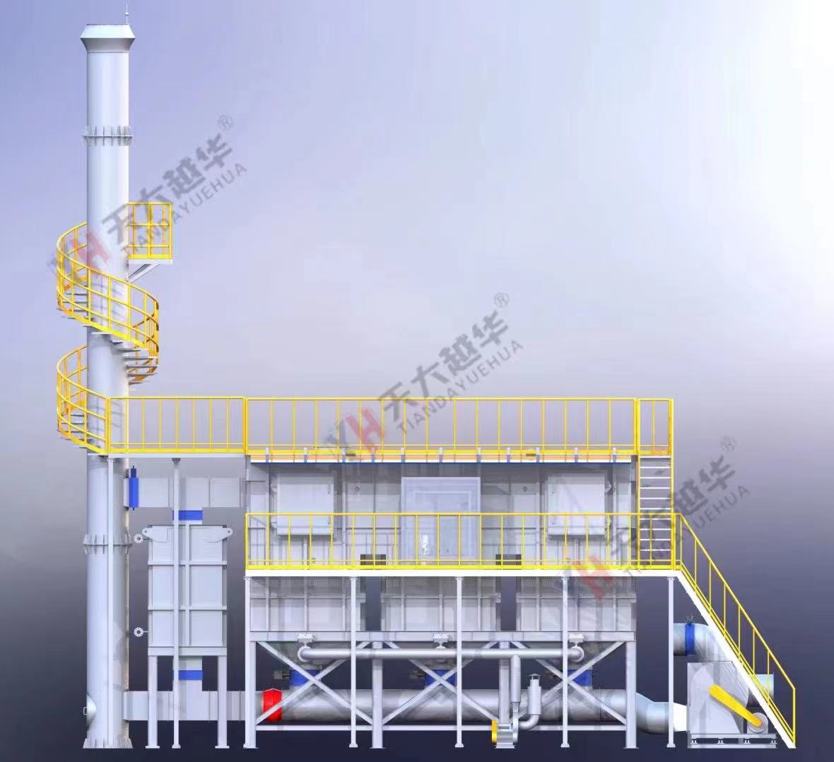 如此周期性運行,廢氣在燃燒室內(nèi)氧化分解,燃燒室內(nèi)溫度維持在設(shè)定溫度(一般為800~850℃)。當(dāng)RTO進(jìn)氣口的廢氣濃度達(dá)到一定值時,VOCs氧化釋放的熱量能夠維持RTO蓄熱和放熱的能量儲備,則此時RTO不需要使用燃料就能夠維持燃燒室內(nèi)的溫度。