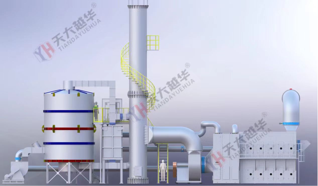 吸附有大量VOCs的沸石轉(zhuǎn)輪進入高溫脫附區(qū)時,小風(fēng)量的熱空氣氣體(溫度約220°C)將沸石轉(zhuǎn)輪上的VOCs分子脫附出來轉(zhuǎn)換成高濃度廢氣,濃縮倍數(shù)一般為5~30倍;吸附完成之后利用脫附風(fēng)機送入后端的CO系統(tǒng)或RTO系統(tǒng)進行燃燒處理,氧化產(chǎn)生的高溫氣體經(jīng)過換熱后作為再生空氣使用,達到節(jié)能效果。